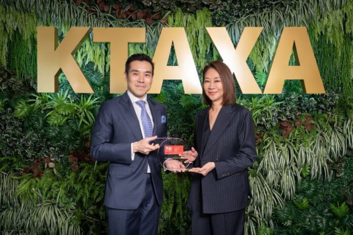 บมจ.กรุงไทย-แอกซ่า ประกันชีวิต นำโดยคุณณัฐพิสิษฐ์ ครุฑครองชัย ประธานเจ้าหน้าที่บริหาร (คนซ้าย) และคุณสรัสวดี คุปตพงศ์ ประธานเจ้าหน้าที่บริหาร ฝ่ายทรัพยากรบุคคล (คนขวา) รับรางวัลแห่งความสำเร็จ Top Employer Awards Thailand 2026 จาก Top Employer Institute ต่อเนื่องเป็นปีที่ 3 และเป็นบริษัทแรกในกลุ่มแอกซ่าใน