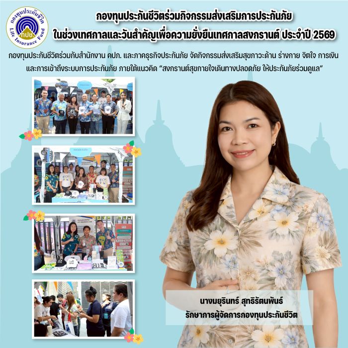 ซึ่งมีวัตถุประสงค์เพื่อส่งเสริมสุขภาวะด้านร่างกาย จิตใจ การเงิน และส่งเสริมการเข้าถึงระบบประกันภัยในช่วงเทศกาลสำคัญ โดยกองทุนฯ ร่วมออกบูธประชาสัมพันธ์ สร้างความรู้ ความเข้าใจเกี่ยวกับบทบาท ภารกิจของกองทุนประกันชีวิต แนะนำวิธีการตรวจสอบเงินกรมธรรม์ล่วงพ้นอายุความ เพื่อให้ประชาชนได้รับเงินคืนตามสิทธิด้วยความสะดวก อันเป็นการเสริมสร้างความเชื่อมั่นต่อธุรกิจประกันชีวิต