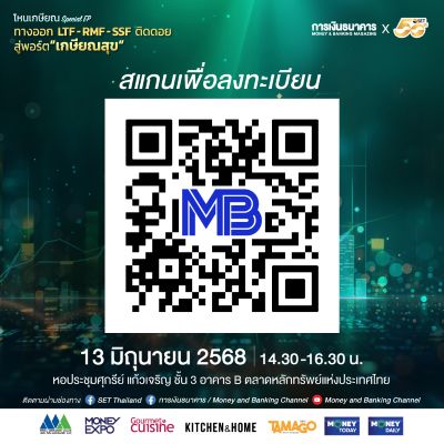 วารสารการเงินธนาคาร ร่วมกับ ตลาดหลักทรัพย์แห่งประเทศไทย วิทยากรผู้เชี่ยวชาญที่จะมาแชร์กลยุทธ์การวางแผนทางการเงินเพื่อวัยเกษียณอย่างมั่นใจ ทางเลือกการลงทุนช่วยลดหย่อนภาษีอย่างฉลาด พร้อมกลยุทธ์สร้างพอร์ตที่แข็งแกร่งในระยะยาว ในวันศุกร์ที่ 13 มิถุนายน 2568 เวลา 14.30-16.30 น. ณ หอประชุมศุกรีย์ แก้วเจริญ ชั้น 3 อาคาร B ตลาดหลักทรัพย์แห่งประเทศไทย