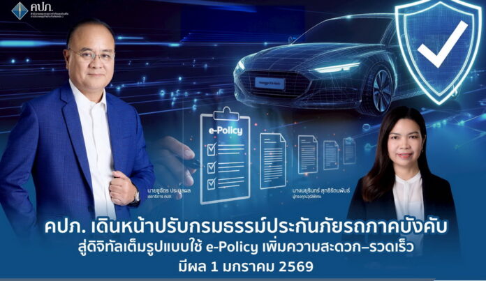 สำนักงานคณะกรรมการกำกับและส่งเสริมการประกอบธุรกิจประกันภัย (สำนักงาน คปภ.) ออกคำสั่งนายทะเบียนที่ 66/2568 เรื่อง ให้ใช้แบบและข้อความตารางกรมธรรม์ประกันภัยคุ้มครองผู้ประสบภัยจากรถ การออกและส่งมอบกรมธรรม์ประกันภัยคุ้มครองผู้ประสบภัยจากรถ โดยมีผลบังคับใช้ตั้งแต่วันที่ 1 มกราคม 2569 เป็นต้นไป เพื่อให้ประชาชนได้รับบริการที่รวดเร็ว โปร่งใส และตอบโจทย์การใช้ชีวิตในยุคดิจิทัล