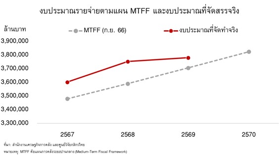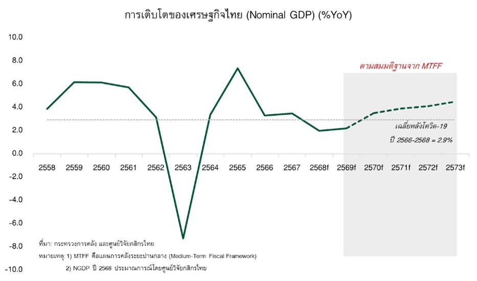 หมายเหตุ: 1) การเติบโตเศรษฐกิจอิงจากแผนการคลังระยะปานกลางที่ ครม. อนุมัติเมื่อวันที่ 18 พ.ย.68