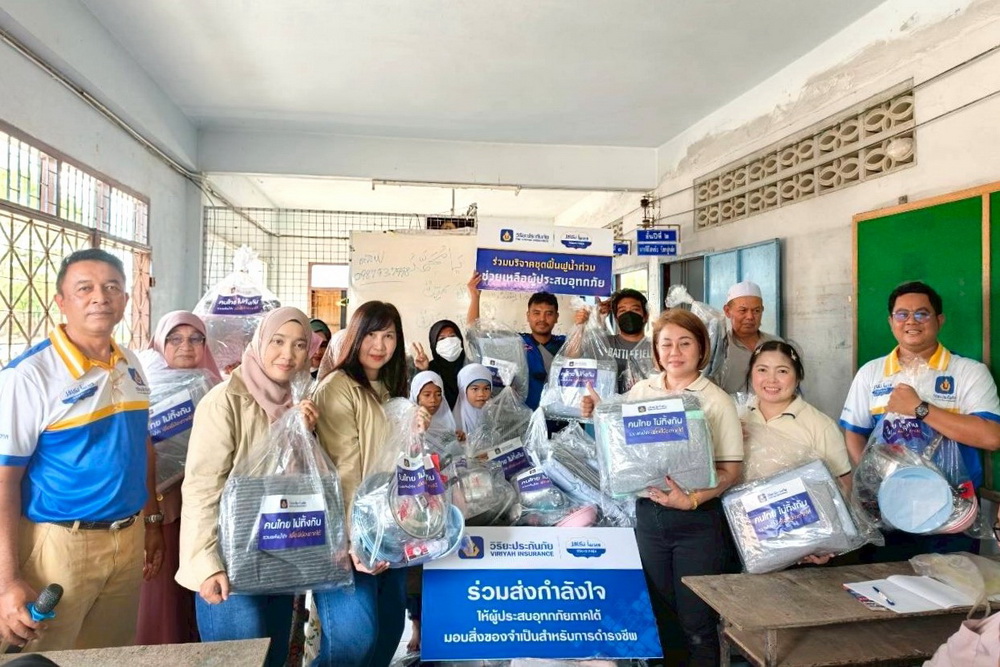 นางสาวกาญจนา เอี่ยมโสภา ผู้จัดการโครงการประกันภัยตามหลักศาสนาอิสลาม (ตะกาฟุล) พร้อมด้วย นางสาวนนทชา โกศล ผู้จัดการขายและขยายงานด้านการตลาด NON – MOTOR ฝ่ายปฏิบัติการภาค 5 (ภาคใต้) ด้านสาขา บริษัท วิริยะประกันภัย จำกัด (มหาชน) นำกลุ่มวิริยะจิตอาสา สังกัดสาขาหาดใหญ่ ลงพื้นที่มอบชุดอุปกรณ์ฟื้นฟูน้ำท่วม ภายใต้โครงการ “คนไทยไม่ทิ้งกัน” เพื่อช่วยฟื้นฟูเยียวยาความเดือดร้อนแก่ผู้ประสบภัยที่ได้รับผลกระทบจากเหตุการณ์มหาอุทกภัยภาคใต้ ในช่วงระยะเวลาที่ผ่านมา ให้สามารถกลับมาดำเนินชีวิตประจำวันตามปกติโดยเร็วที่สุด