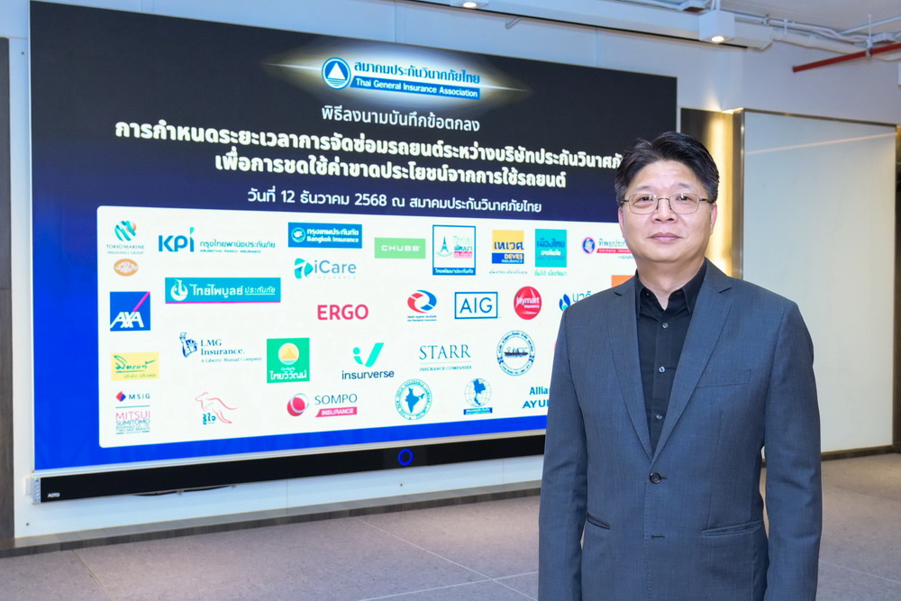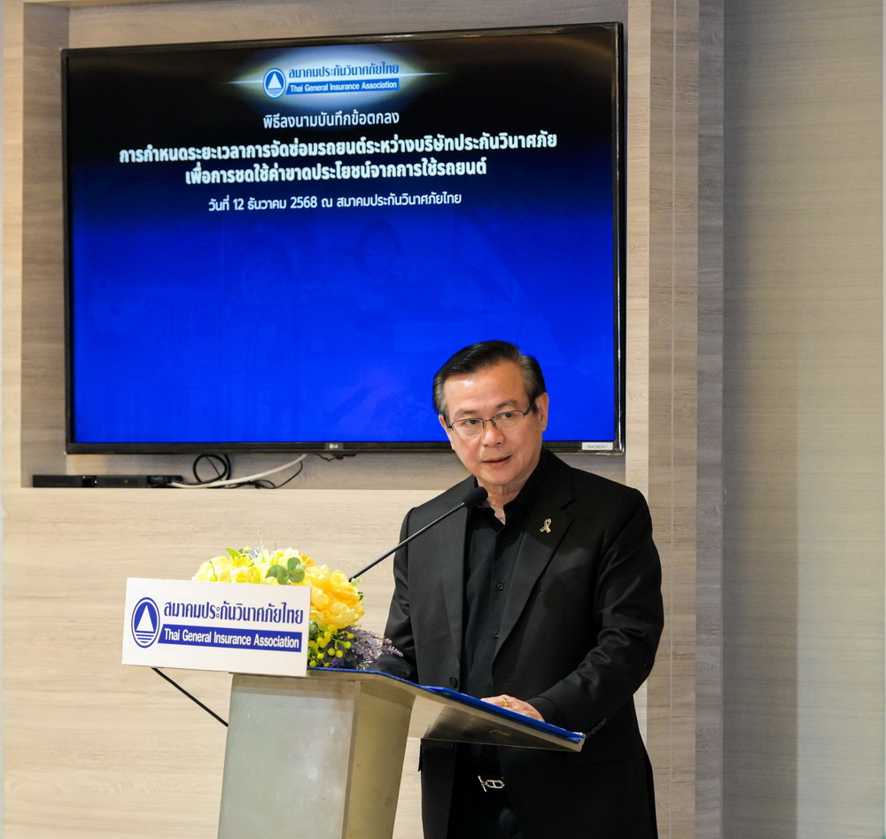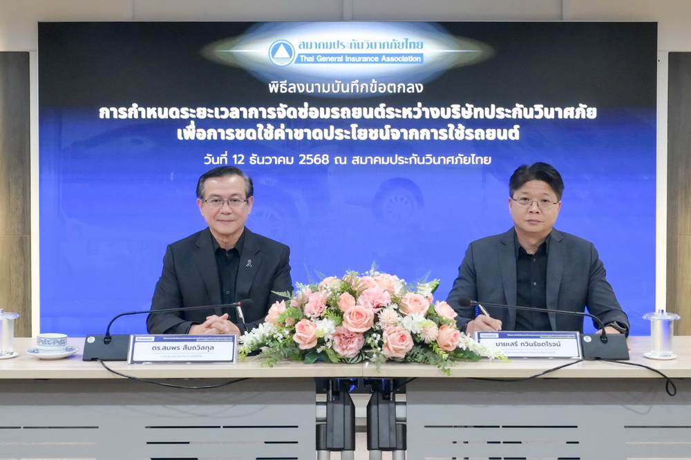 สมาคมประกันวินาศภัยไทยจัดพิธีลงนามบันทึกข้อตกลง “กรอบระยะเวลาการจัดซ่อมรถยนต์ระหว่างบริษัทประกันวินาศภัย เพื่อการชดใช้ค่าขาดประโยชน์จากการใช้รถ” เมื่อวันที่ 12 ธันวาคม 2568 โดยมีบริษัทประกันวินาศภัยเข้าร่วมลงนามจำนวน 32 บริษัท ถือเป็นความร่วมมือครั้งสำคัญของอุตสาหกรรมประกันภัยไทยในการสร้างมาตรฐานกลางด้านการซ่อมรถยนต์ เพื่อให้การชดเชยค่าขาดประโยชน์จากการใช้รถมีแนวทางที่ชัดเจน เที่ยงตรง ช่วยลดการร้องเรียน เสริมประสิทธิภาพการจ่ายค่าสินไหมทดแทน และสร้างความเชื่อมั่นแก่ประชาชนผู้ใช้รถทั่วประเทศ
