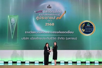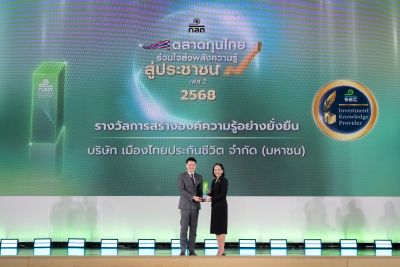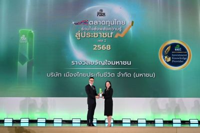 บริษัท เมืองไทยประกันชีวิต จำกัด (มหาชน) คว้า 4 รางวัล จากโครงการ “ตลาดทุนไทยร่วมใจ ส่งพลังความรู้ สู่ประชาชน เฟส 2 ปี 2568” ซึ่งจัดโดยสำนักงานคณะกรรมการกำกับหลักทรัพย์และตลาดหลักทรัพย์ (ก.ล.ต.) สะท้อนบทบาทขององค์กรในการขับเคลื่อนการพัฒนาความรู้ด้านการเงิน การประกัน และการลงทุน (Financial and Insurance Literacy) ให้แก่ประชาชนไทยอย่างเป็นรูปธรรม ภายใต้กรอบการพัฒนาที่ยั่งยืน (ESG) และความรับผิดชอบต่อสังคมในการเสริมสร้างภูมิคุ้มกันทางการเงินในระยะยาว
