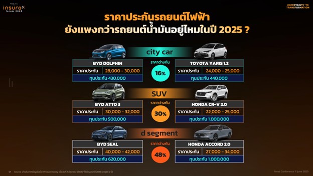 โดยในปี 2025 นี้มีแนวโน้มที่ประกันรถยนต์ EV จะแพงขึ้นกว่าในปี 2023-2024 จากเหตุผลหลักๆคือ