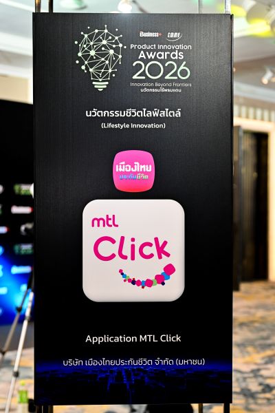 บริษัท เมืองไทยประกันชีวิต จำกัด (มหาชน) คว้ารางวัล “BUSINESS+ PRODUCT INNOVATION AWARDS 2026” ด้านนวัตกรรมชีวิตไลฟ์สไตล์ (Lifestyle Innovation) ต่อเนื่องเป็นปีที่ 7 นับตั้งแต่ปี 2020–2026 ตอกย้ำความสำเร็จของ “MTL Click Application” แพลตฟอร์มดิจิทัลที่พัฒนาเพื่อดูแลลูกค้าอย่างรอบด้านในทุกมิติสะท้อนถึงความมุ่งมั่นในการพัฒนานวัตกรรมด้านผลิตภัณฑ์และบริการอย่างต่อเนื่อง เพื่อยกระดับประสบการณ์ของลูกค้าให้ตอบโจทย์การใช้ชีวิตและไลฟ์สไตล์ของคนในยุคดิจิทัลได้อย่างแท้จริง