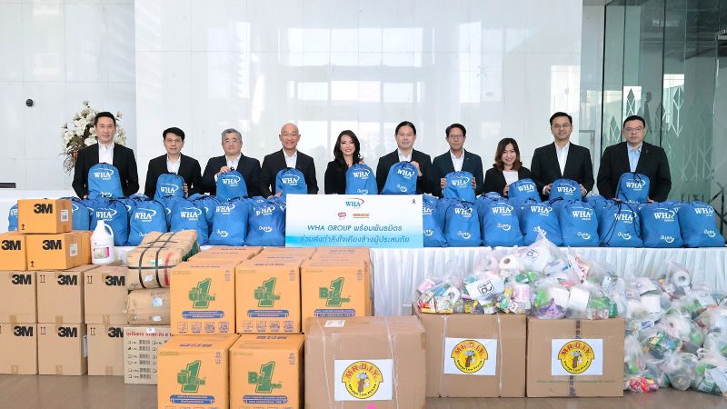 คุณจรีพร จารุกรสกุล ประธานคณะกรรมการบริหาร และประธานเจ้าหน้าที่บริหารกลุ่ม บมจ. ดับบลิวเอชเอ คอร์ปอเรชั่น (WHA Group) พร้อมด้วยผู้บริหารระดับสูง พนักงาน รวบรวม บรรจุ และจัดเตรียม “ถุงปันสุข” จำนวน 1,000 ถุง ร่วมกับพันธมิตร ได้แก่ บมจ. มิสเตอร์. ดี.ไอ.วาย. โฮลดิ้ง (ประเทศไทย) บริษัท โลตัส เอเชีย แปซิฟิค แมนูแฟคเจอริ่ง จำกัด บมจ. เอเซีย พรีซิชั่น บริษัท เอทู เทคโนโลยี จำกัด และบริษัท โพลีเทคโนโลยี จำกัด จัดเตรียมสิ่งของจำเป็น เพื่อส่งมอบให้แก่ สภากาชาดไทย 800 ถุง และ สมาคมนิคมอุตสาหกรรมไทยและพันธมิตร 200 ถุง เพื่อกระจายความช่วยเหลือไปยังผู้ประสบภัยอย่างรวดเร็ว ตรงตามพื้นที่ความต้องการเร่งด่วน